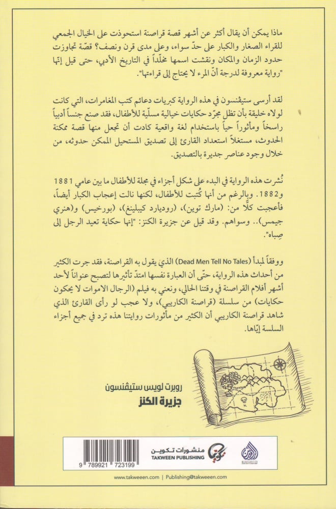 ماذا يمكن أن يقال أكثر عن أشهر قصة قراصنة استحوذت على الخيال الجمعي للقراء الصغار والكبار على حد سواء، وعلى مدى نصف قرن؟ قصة تجاوزت حدود الزمان والمكان ونقشت اسمها مخلدًا في التاريخ الأدبي، حتى قيل إنها "رواية معروفة لدرجة أن المرء لا يحتاج إلى قراءتها". لقد أرسى ستيڤنسون في هذه الرواية كبريات دعائم كتب المغامرات، التي كات لولاه خليقة بأن تظل مجرد حكايات خيالية مسلية للأطفال، فقد صنع جنسًا أدبيًّا راسخًا ومأثورًا حيًّا باستخدام لغة واقعية كادت أن تجعل منها قصة ممكنة الحدوث، مستغلًا استعداد القارئ إلى تصديق المستحيل الممكن حدوثه، من خلال وجود عناصر جديرة بالتصديق. نُشرت هذه الرواية في البدء على شكل أجزاء في مجلة للأطفال ما بين عامي 1881 و1882. وبالرغم من أنها كُتبت للأطفال، لكنها نالت إعجاب الكبار أيضًا، فأعجبت كلًا من: (مارك توين)، (روديارد كيبلينغ)، (بورخيس)، و(هنري جيمس).. وسواهم. وقد قيل عن جزيرة الكنز: "إنها حكاية تعيد الرجل إلى صِباه".