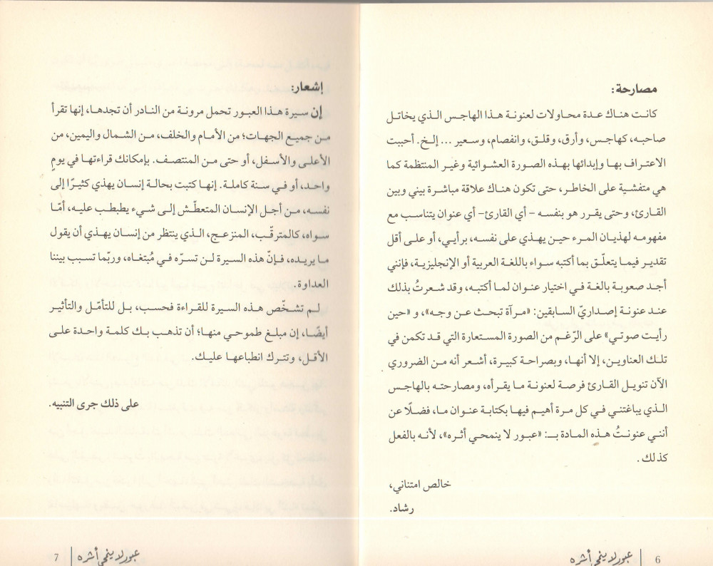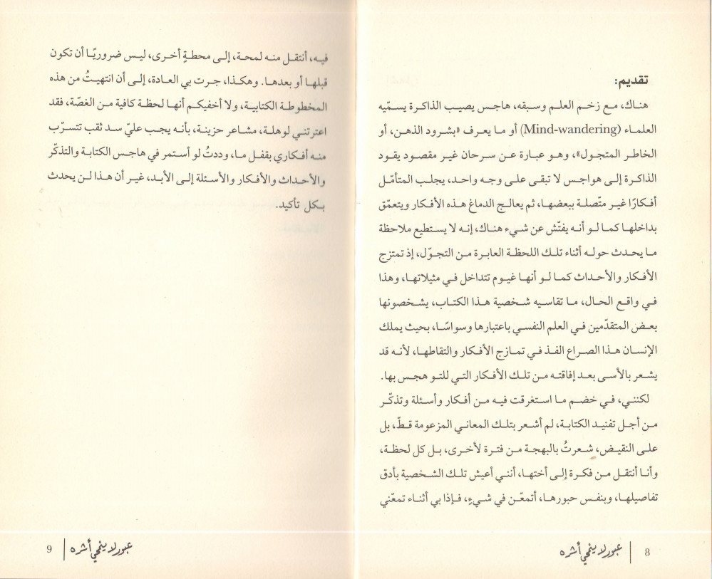 عبور في تلاشيه لا يفنى، بل يبقى، لا يندثر، بل ينتشر، إنه يعبرُ غير آبه ويمضي، كما أعبر غير مكترث جسرًا إلى ضفة أخرى، ثم لا يبقى إلا أثره الذي لا أشعر به وفي نفس الوقت لا أطيقه، إن البقاء هو العبور، ما ينسل ينطبع بعد ذلك في جيب العمر، وكل الذي مضى، مازال حاضرًا هناك، كلّ الوقت وإلى الأبد. عبور لا يعني الزوال؛ إنه ديمومة الخلود، أن يذهب كلّ شيء، ثمّة شيء لن يذهب، في رحيله أثرٌ، وفي أثره إقبال، ما لا أستطيع وصفه، سيظل عالقًا في دهاليز الذاكرة، وحين تترمّد الذاكرة، ستفوح من خلاله شذا الذكريات.