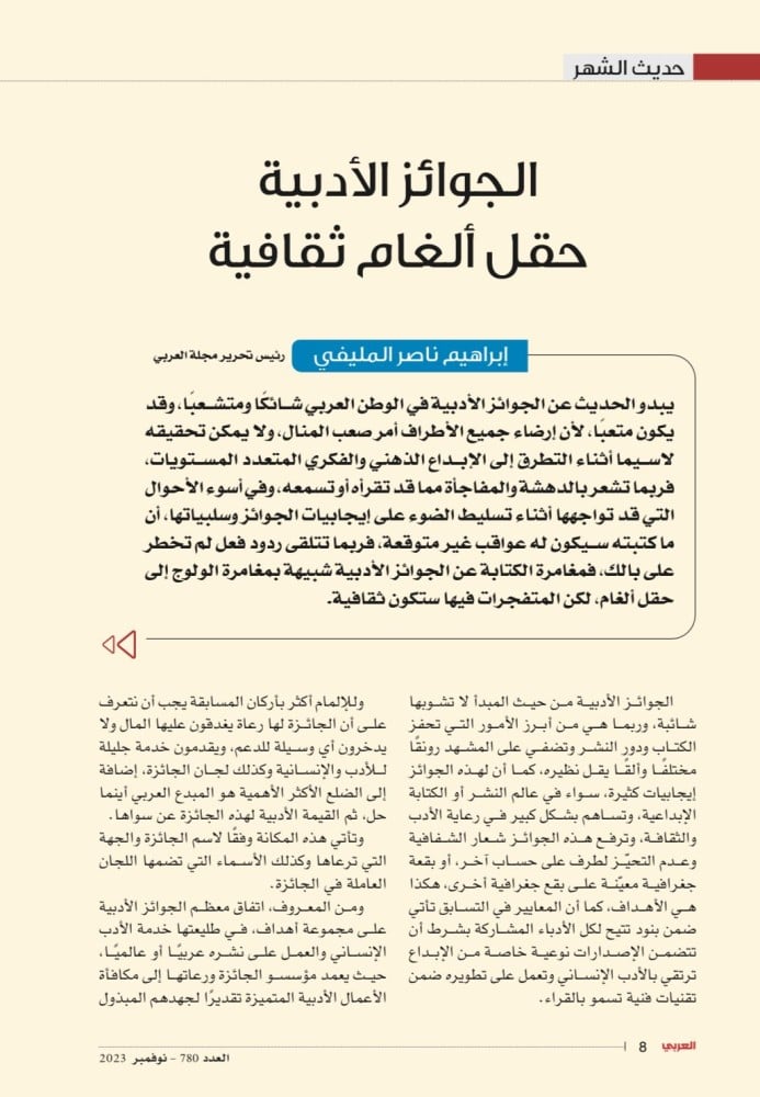 الجوائز الأدبية حقل ألغام ثقافية