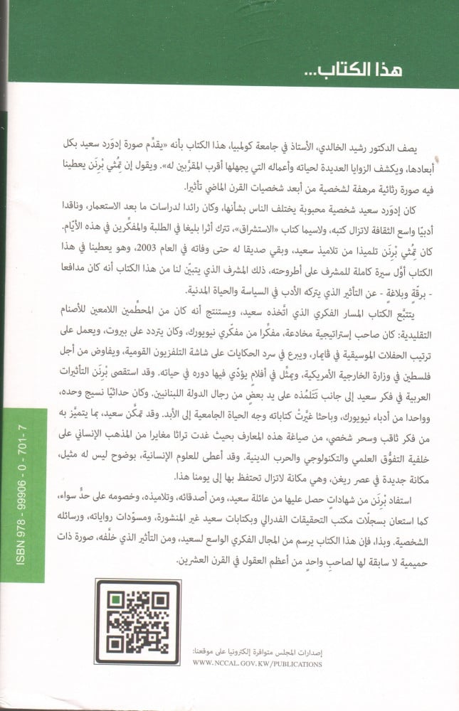 كان إدورد سعید شخصية محبوبة يختلف الناس بشانها. وكان رائدا لدراسات ما بعد الاستعمار، وناقدا أدبيا واسع الثقافة لاتزال كتبه، ولاسيما كتاب «الاستشراق، تترك أثرا بليغا في الطلبة والمفكرين في هذه الأيام كان تمتي يرتن تلميذا من تلاميذ سعيد، وبقي صديقا له حتى وفاته في العام 2003، وهو يعطينا في هذا الكتاب أول سيرة كاملة للمشرف على أطروحته، ذلك المشرف الذي يتبين لنا من هذا الكتاب أنه كان مدافع – برقة وبلاغة – عن التأثير الذي يتركه الأدب في السياسة والحياة المدنية.