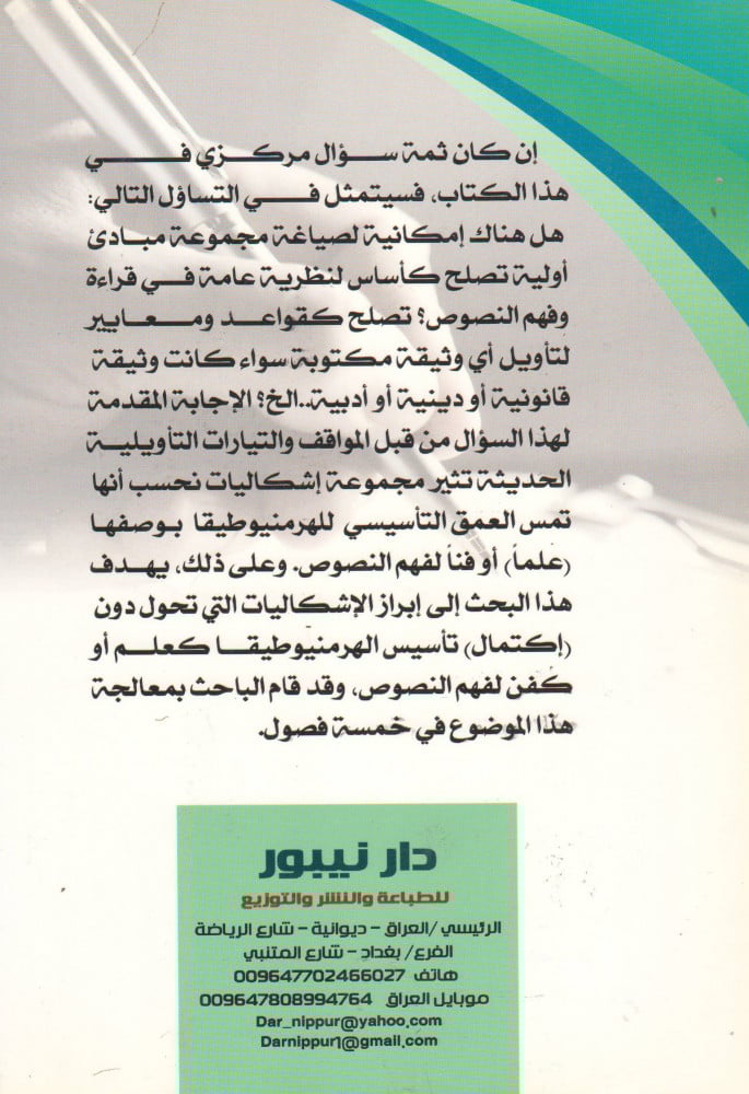 "ان كان ثمة سؤال مركزي في هذا الكتاب فسيكون في السؤال التالي: هل هناك امكانية لصياغة مجموعة مبادئ أولية تصلح كأساس لنظرية عامة في قراءة وفهم النصوص؟..."